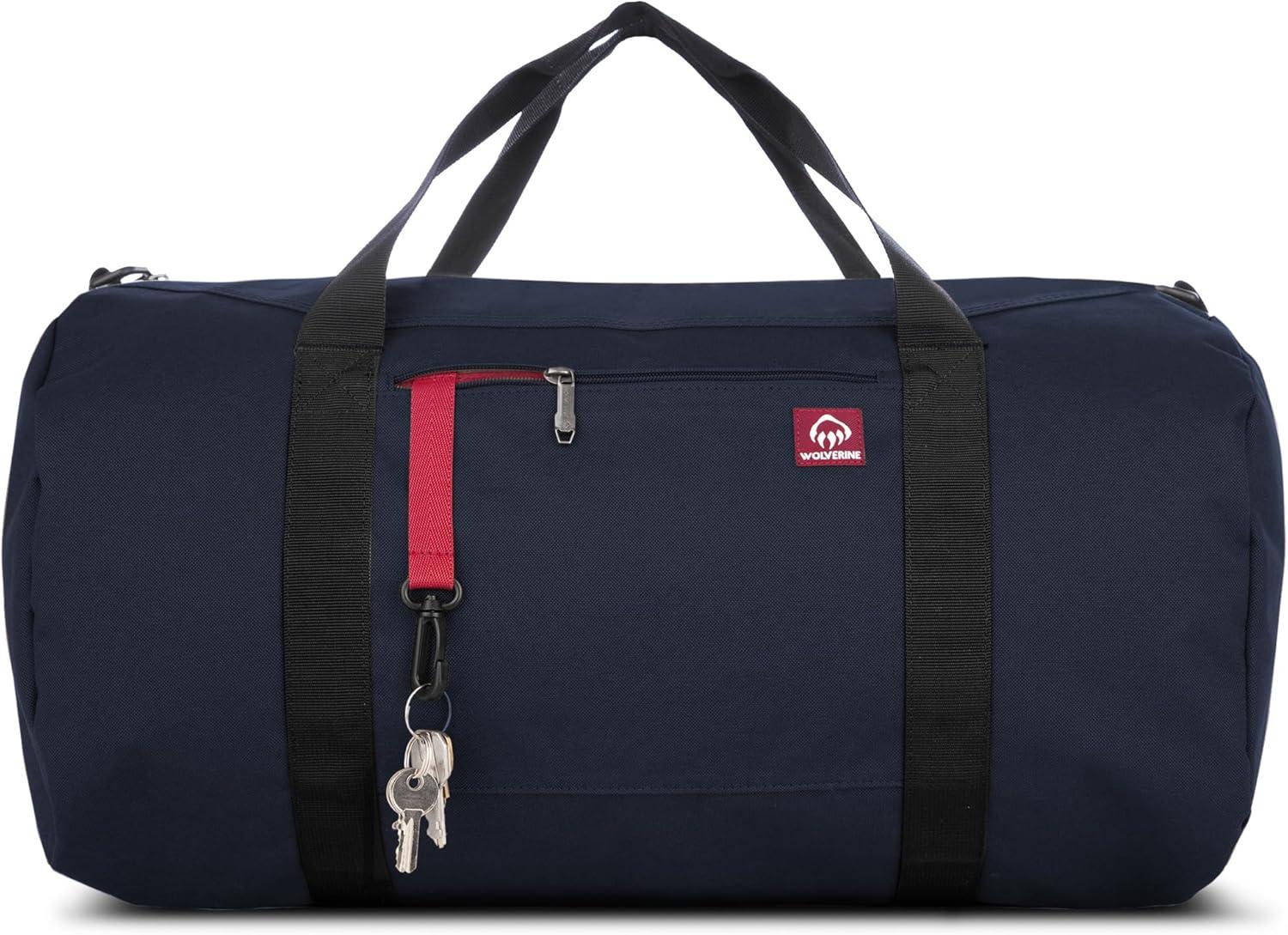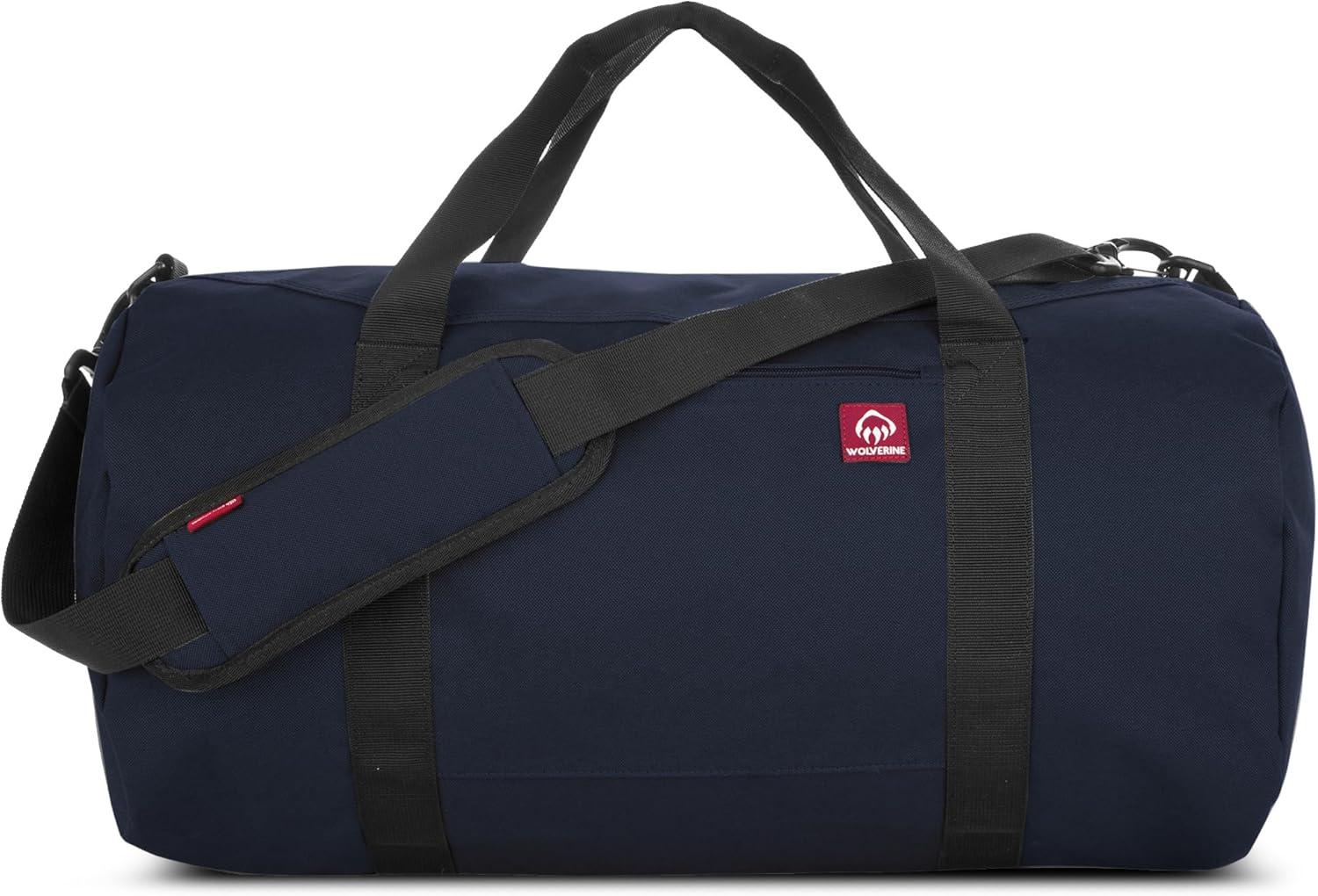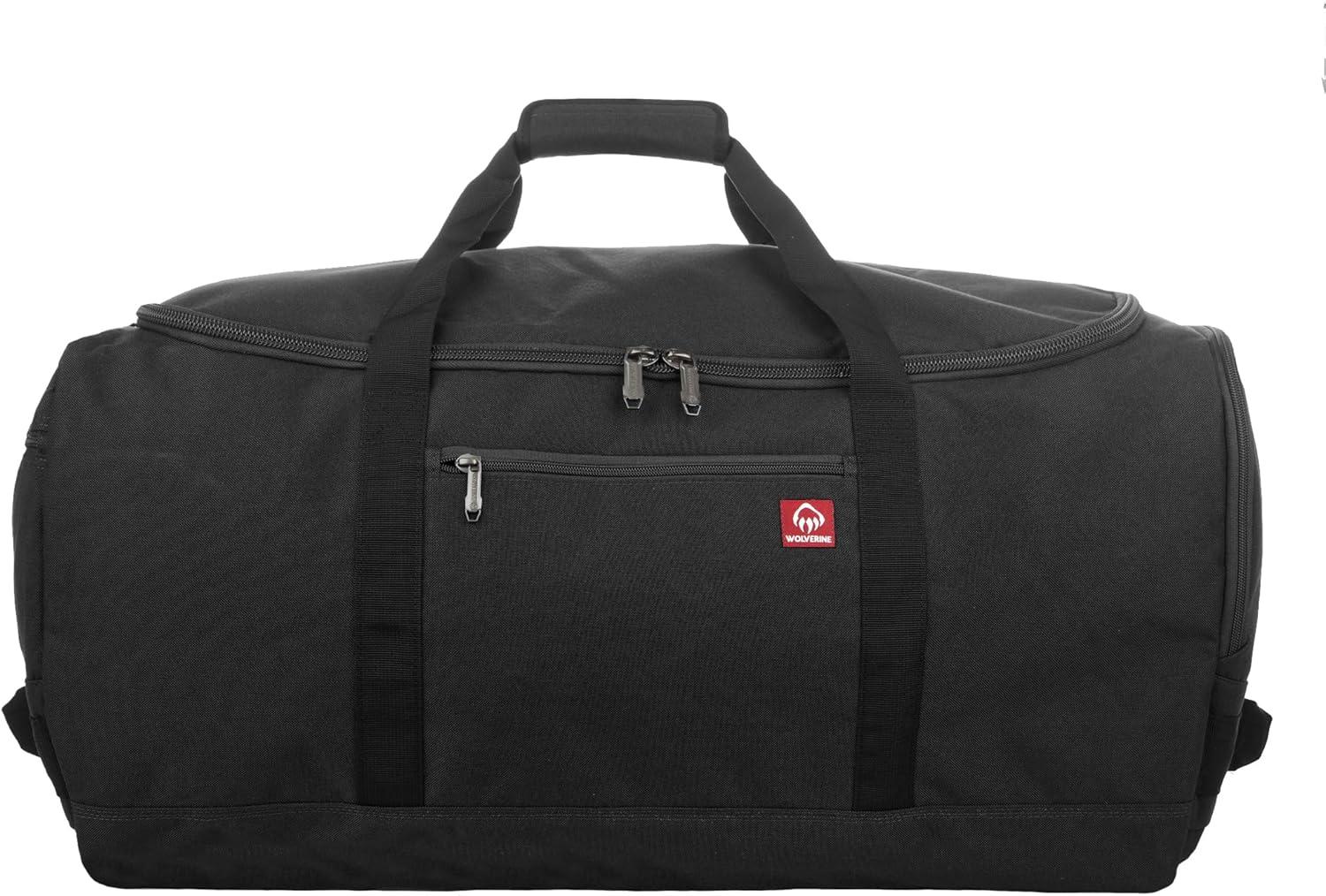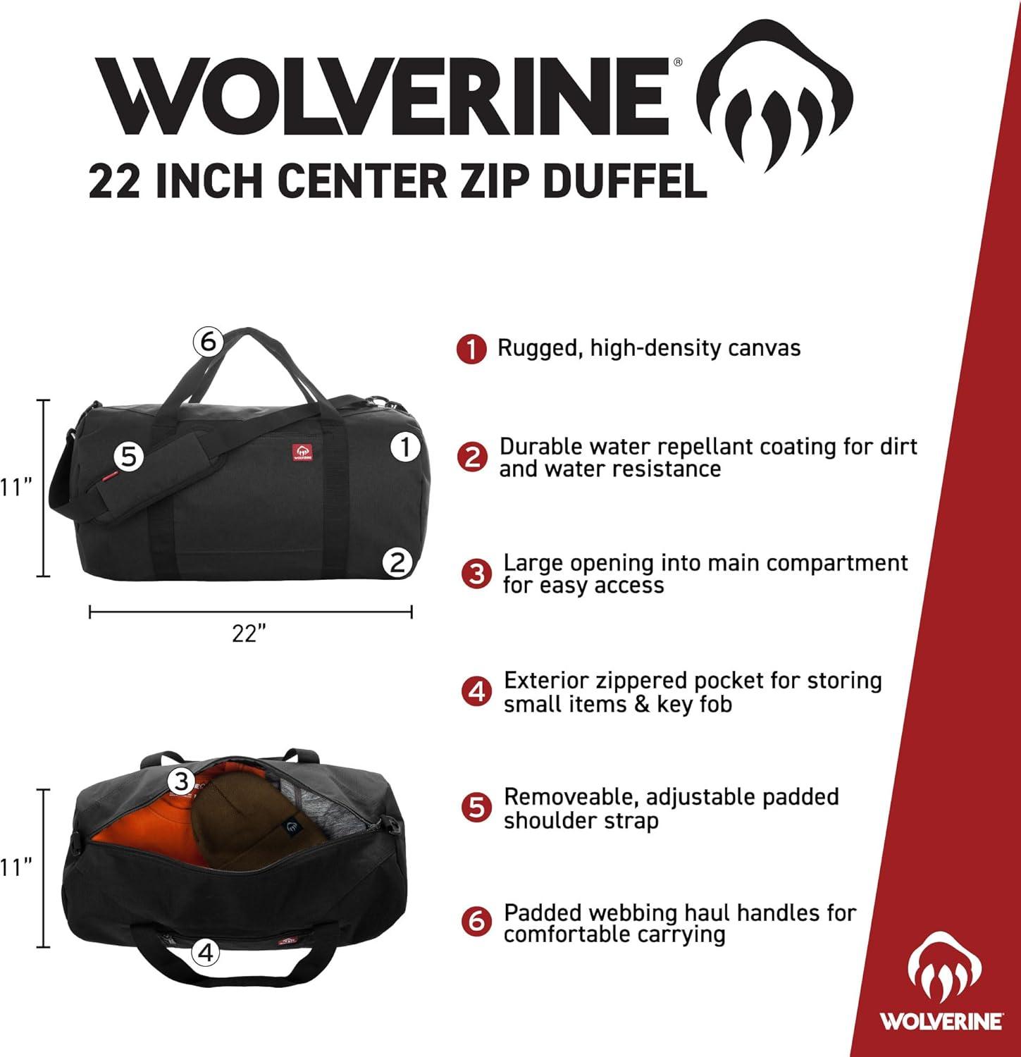 WOLVERINE 22″ Duffel Bag | Heavy Duty | Travel | Work | Outdoor | Center Zip | Barrel | Adjustable Strap(Black)