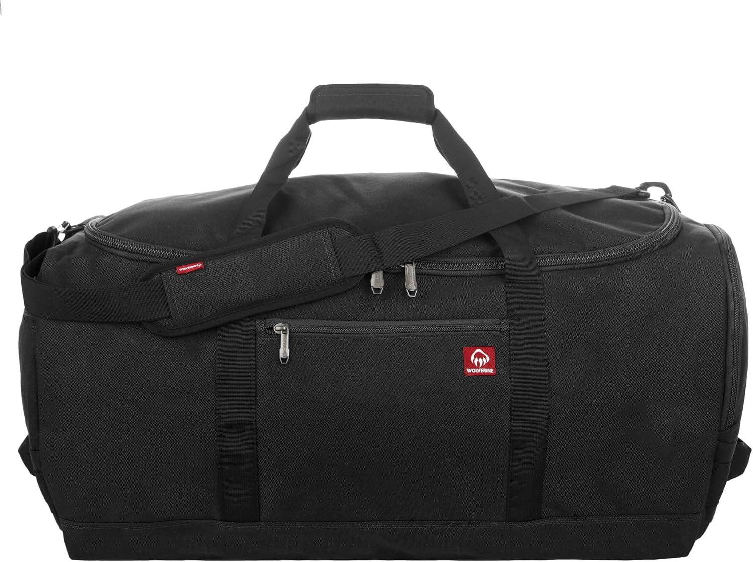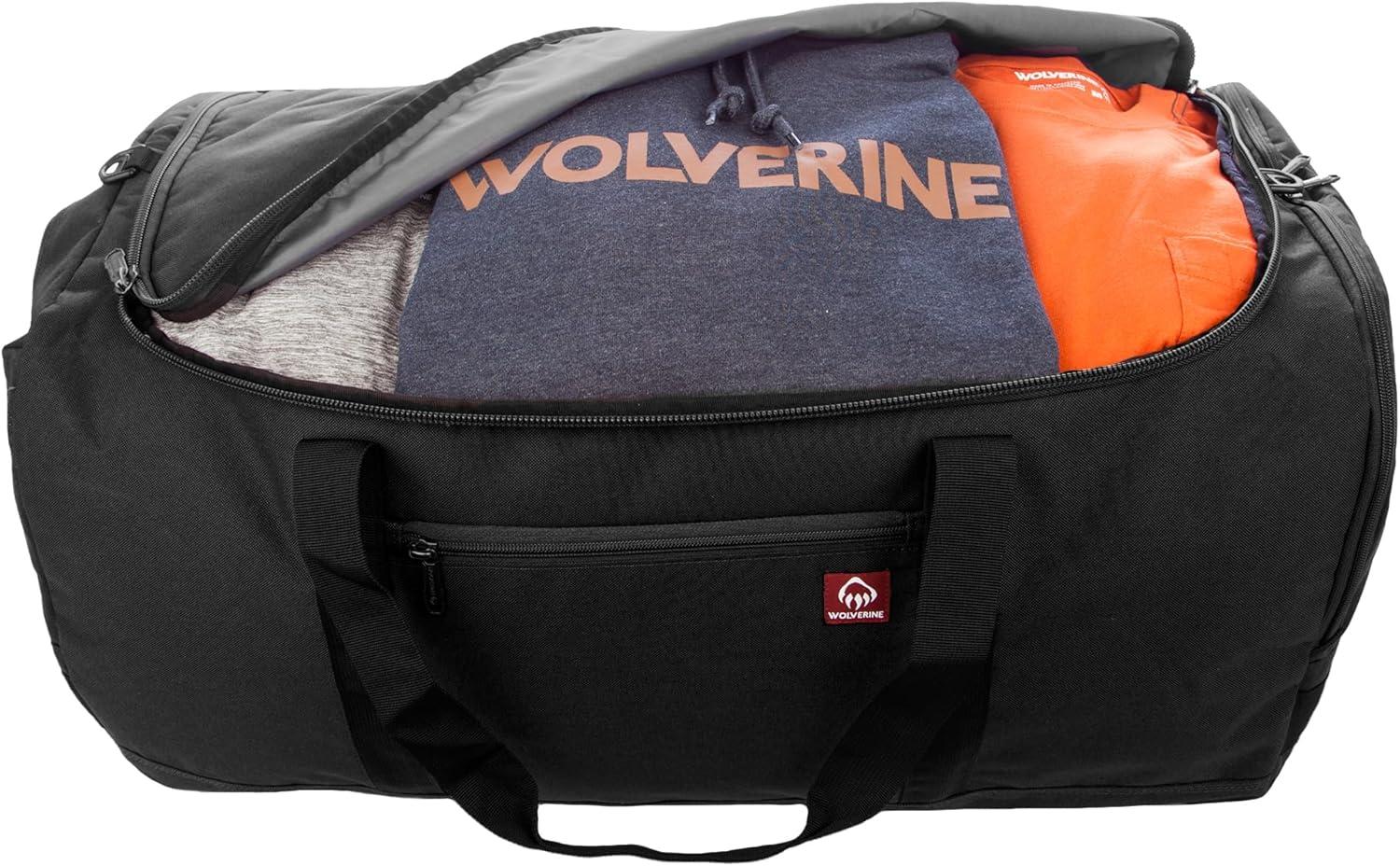 WOLVERINE 30″ Duffel with Boot Made from High-Density Canvas, 112L Capacity Main Compartment(Black)