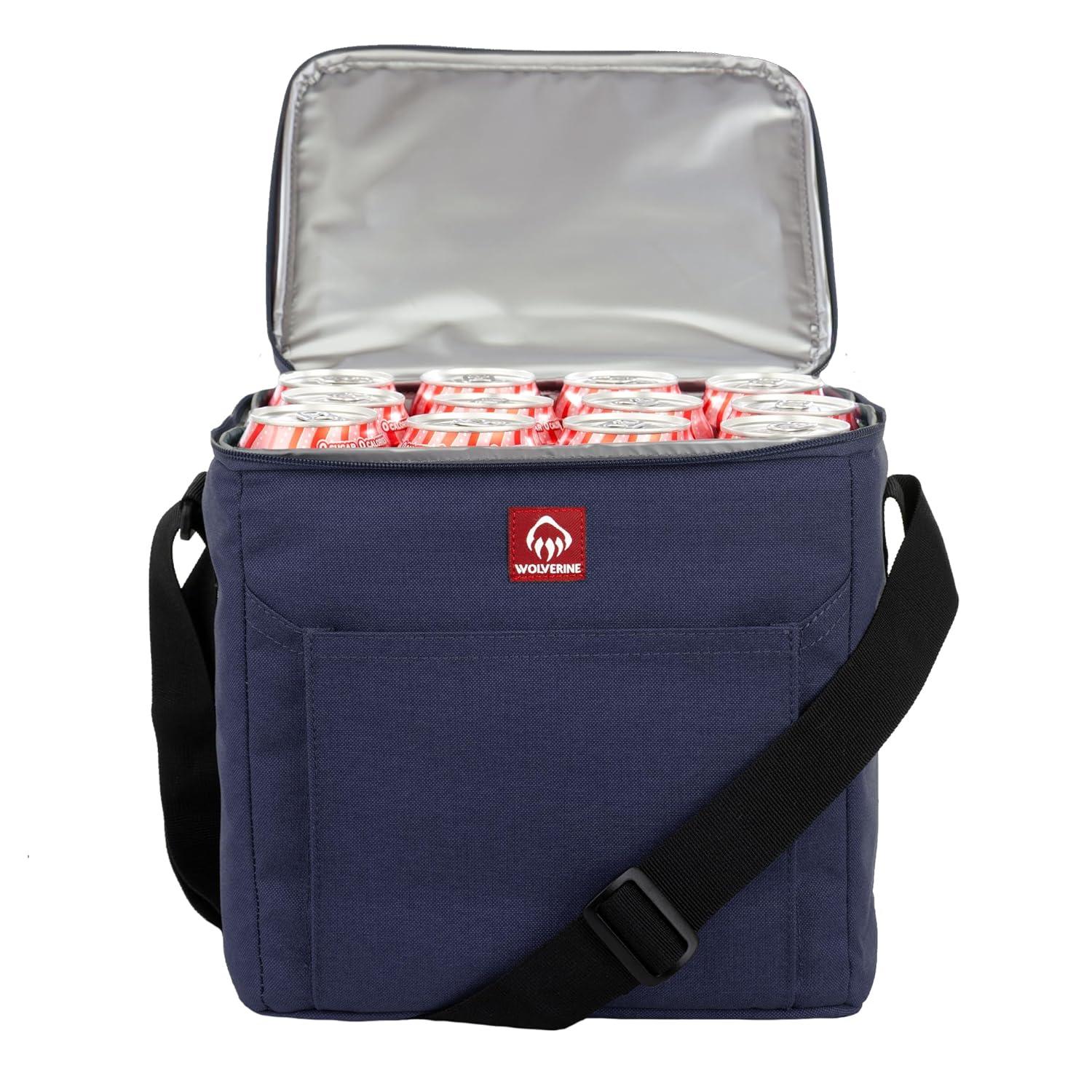 Wolverine 24 Can Cooler | Insulated | Reusable | Heavy Duty | Water Resistant | Worksite | Outdoor | Travel | Tailgating | Durable | Adjustable | Large Capacity | Polyester Canvas – Chestnut(Navy)