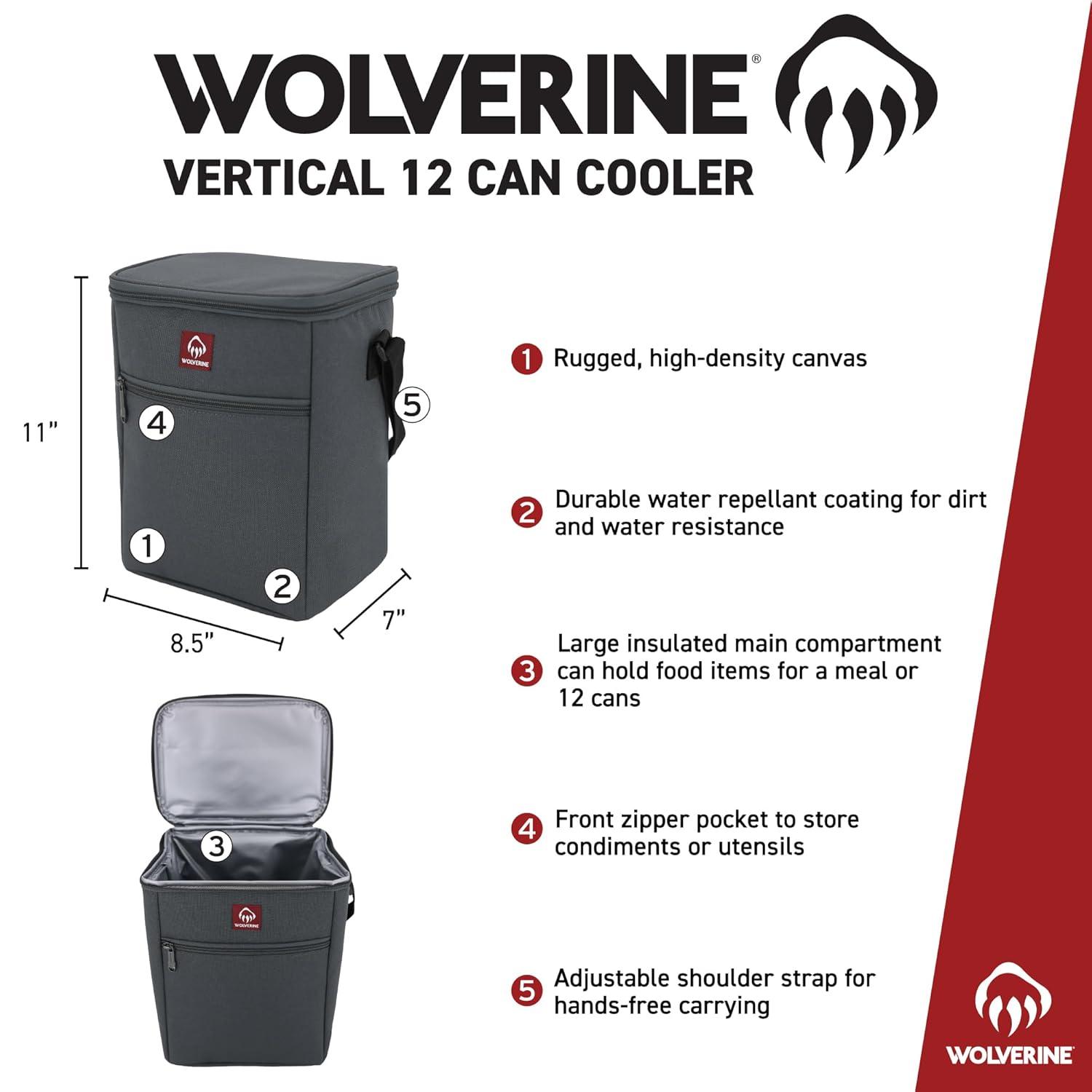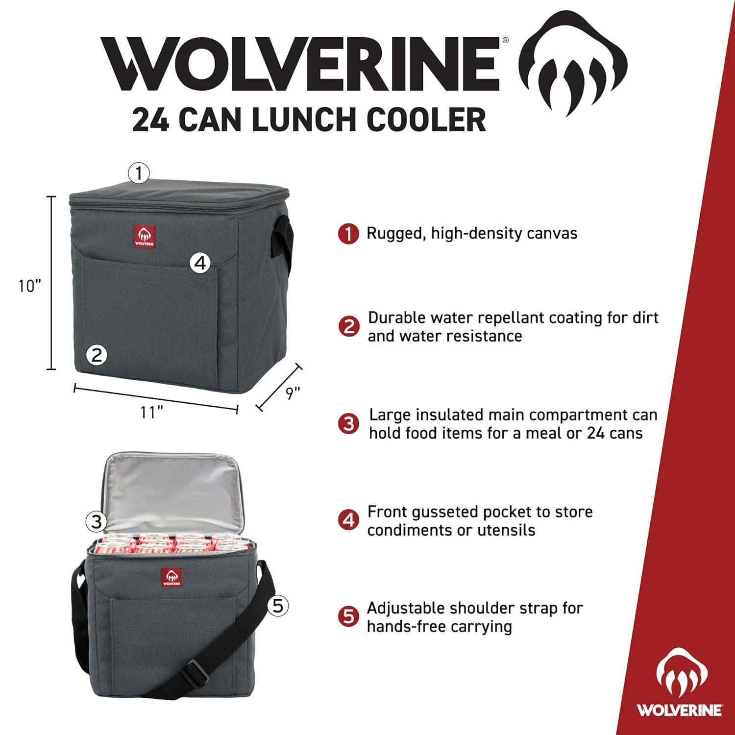 Wolverine 24 Can Cooler | Insulated | Reusable | Heavy Duty | Water Resistant | Worksite | Outdoor | Travel | Tailgating | Durable | Adjustable | Large Capacity | Polyester Canvas – Chestnut(Grey)
