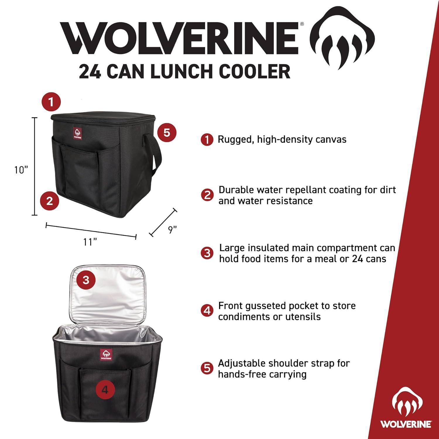 Wolverine 24 Can Cooler | Insulated | Reusable | Heavy Duty | Water Resistant | Worksite | Outdoor | Travel | Tailgating | Durable | Adjustable | Large Capacity | Polyester Canvas – Chestnut(True Black)
