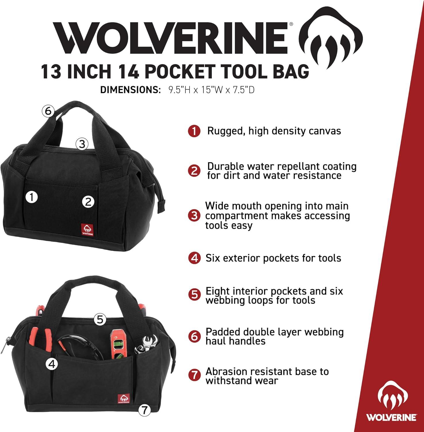 Wolverine Tool Bag |Tote | Utility Roll | Durable Nailhead Nylon, Adjustable Straps, and Versatile Pockets(Black)