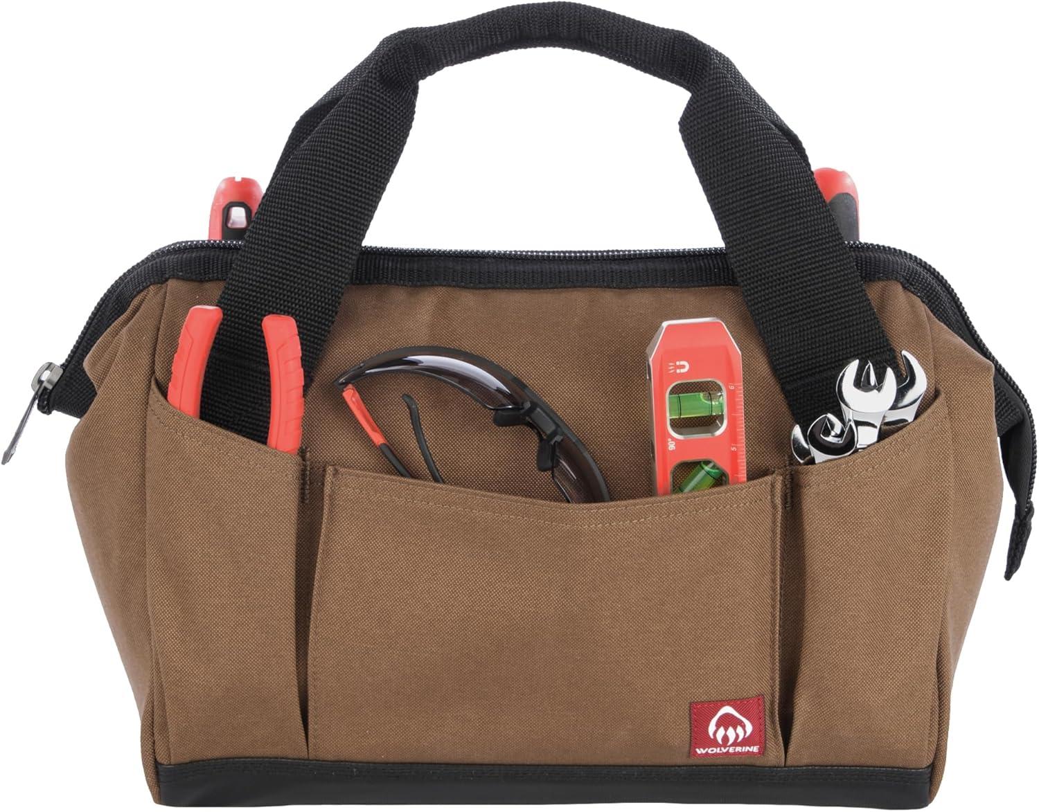 • Wolverine Tool Bag |Tote | Utility Roll | Durable Nailhead Nylon, Adjustable Straps, and Versatile Pockets(Chestnut)