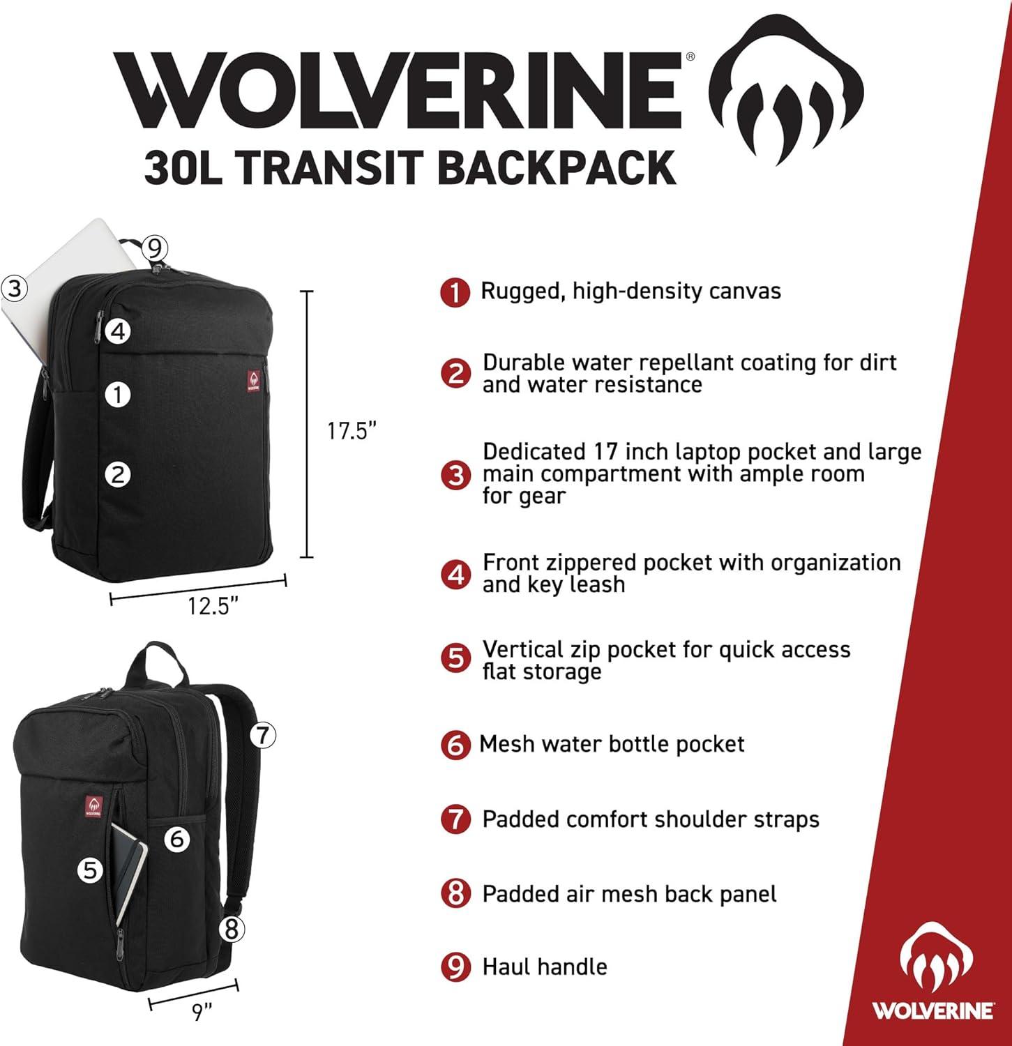 • WOLVERINE Lightweight | Water Resistant | Rugged Backpack for Travel or Work, Laptop-Navy, 23L(Transit – Black)