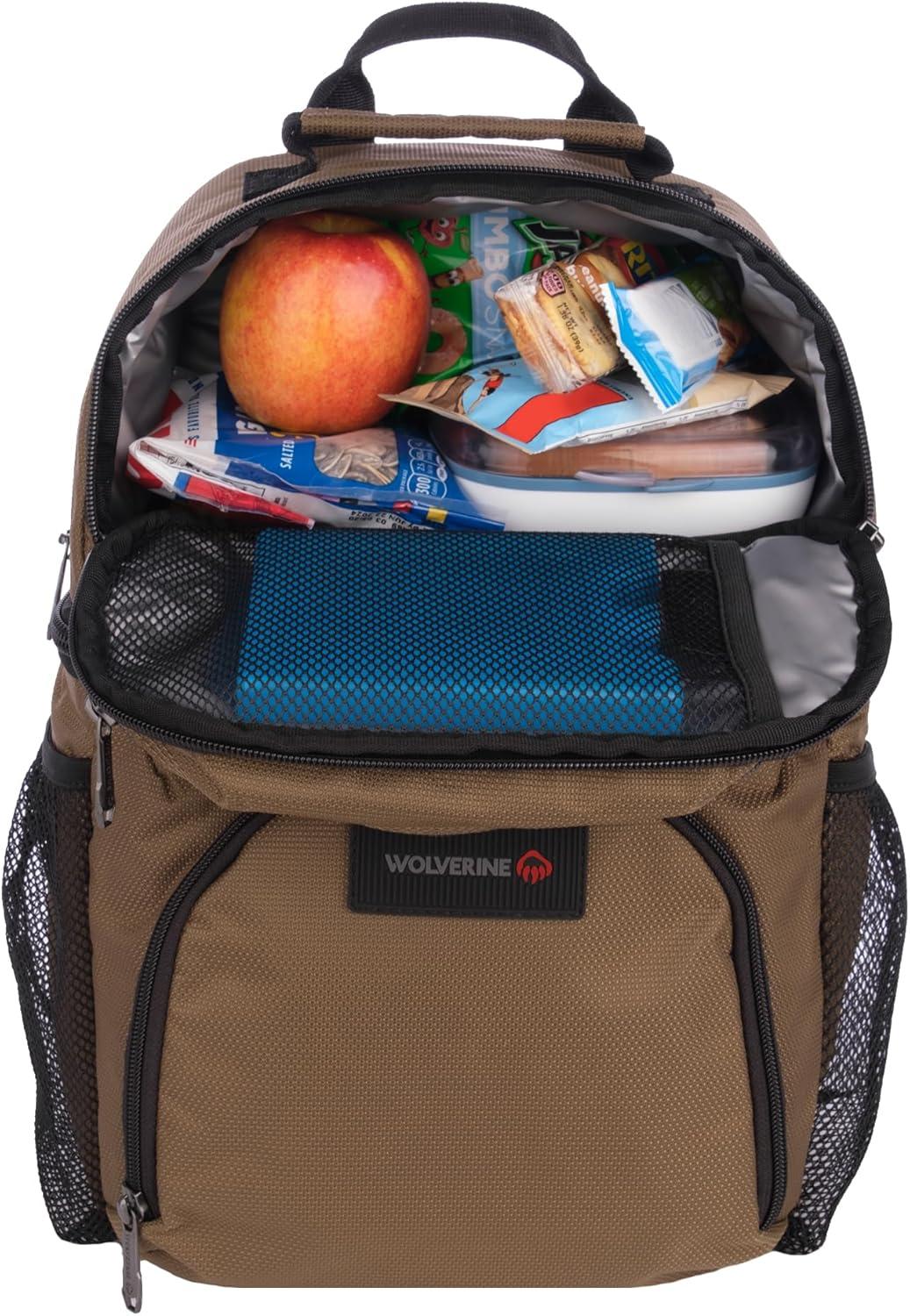 Wolverine 36 Can Cooler Backpack with Durable Nailhead Nylon, Dual Compartment Cooler & Dry Storage, Padded Mesh Back Panel, & Exterior Water Bottle Pockets(Chestnut)