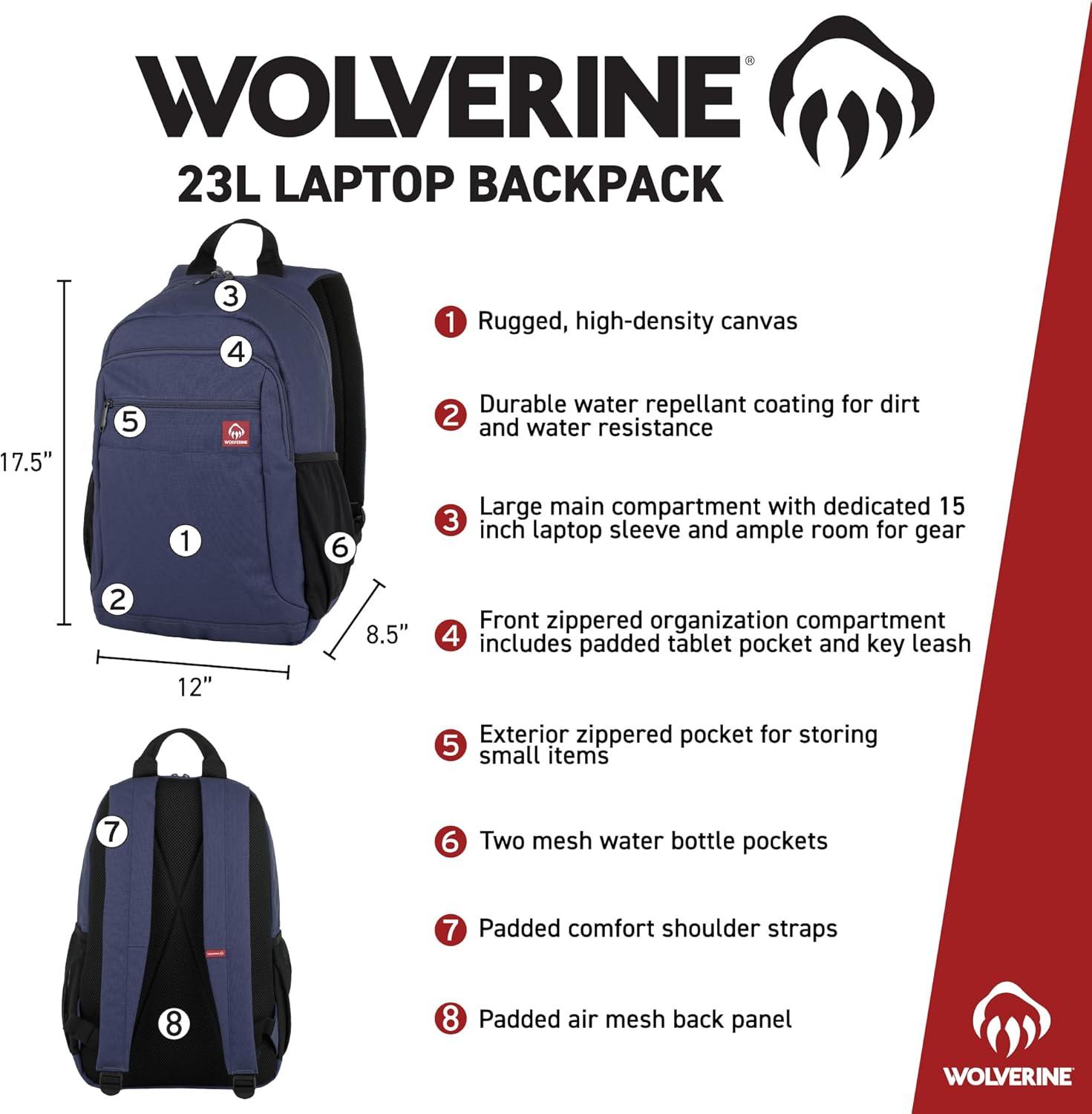 WOLVERINE Lightweight | Water Resistant | Rugged Backpack for Travel or Work, Laptop-Navy, 23L(Laptop – Navy)