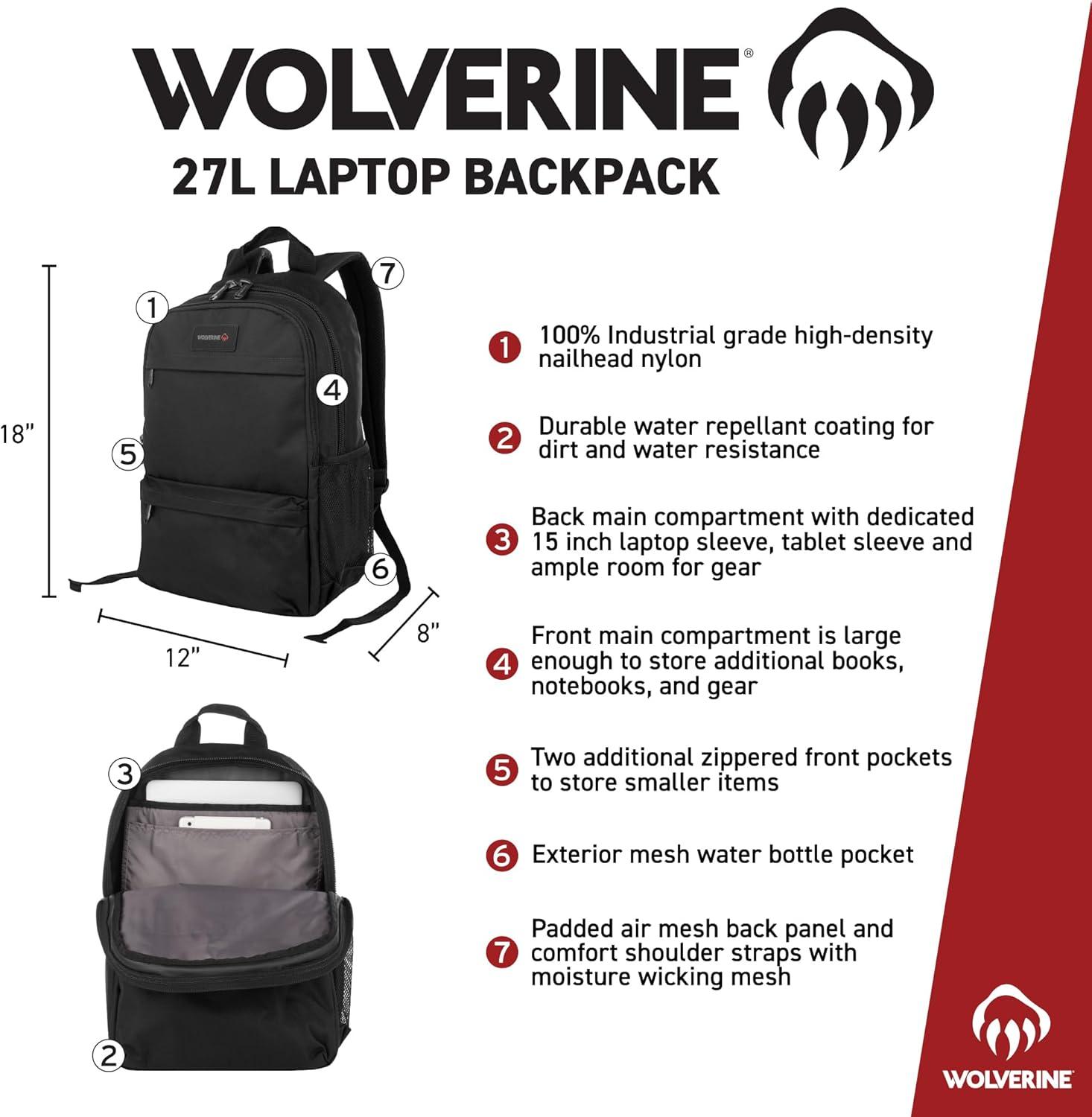 • WOLVERINE Lightweight | Water Resistant | Rugged Backpack for Travel or Work, Laptop-Navy, 23L(Laptop – Black)
