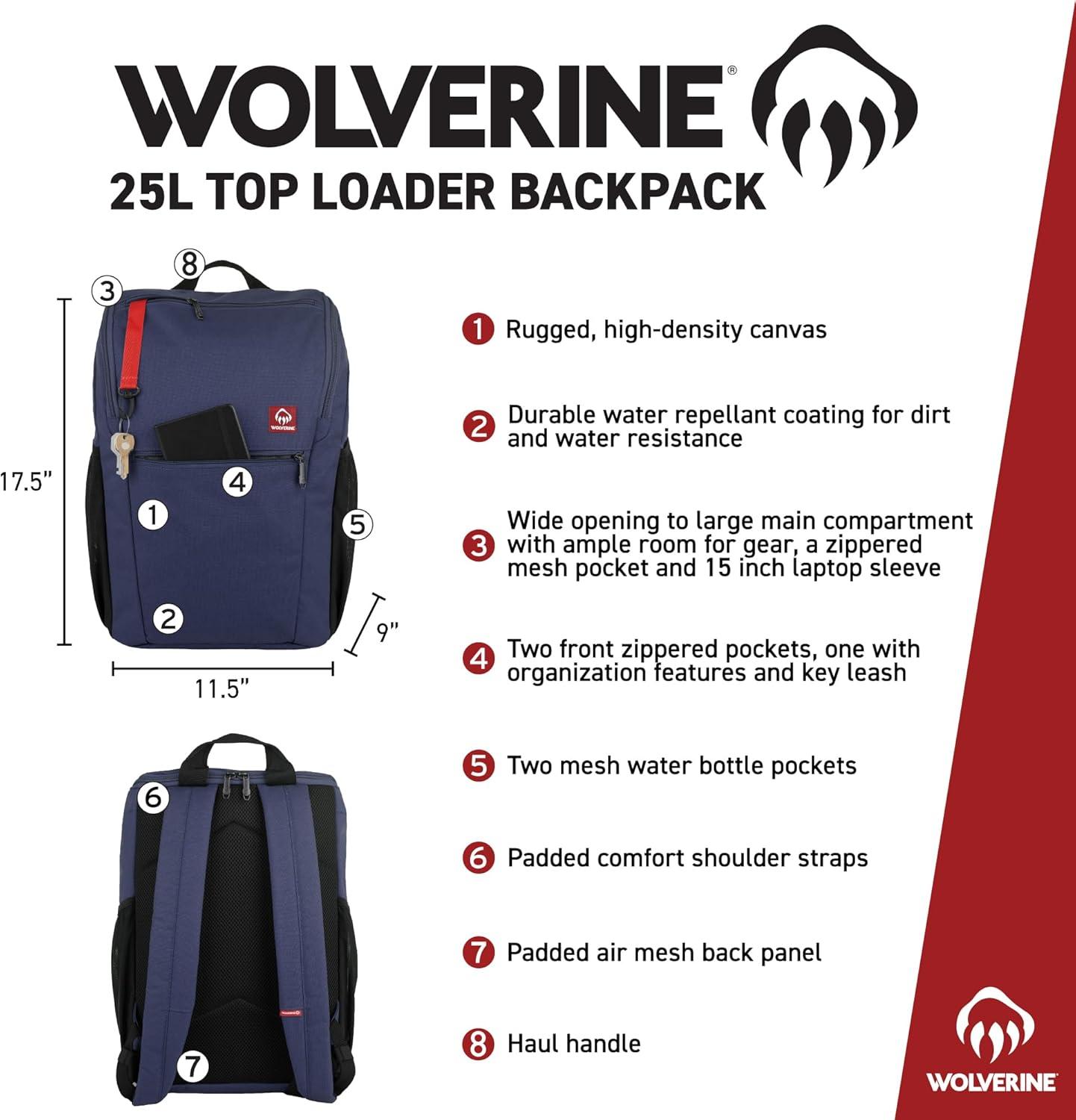 • WOLVERINE Lightweight | Water Resistant | Rugged Backpack for Travel or Work, Laptop-Navy, 23L(Top Loader – Black)