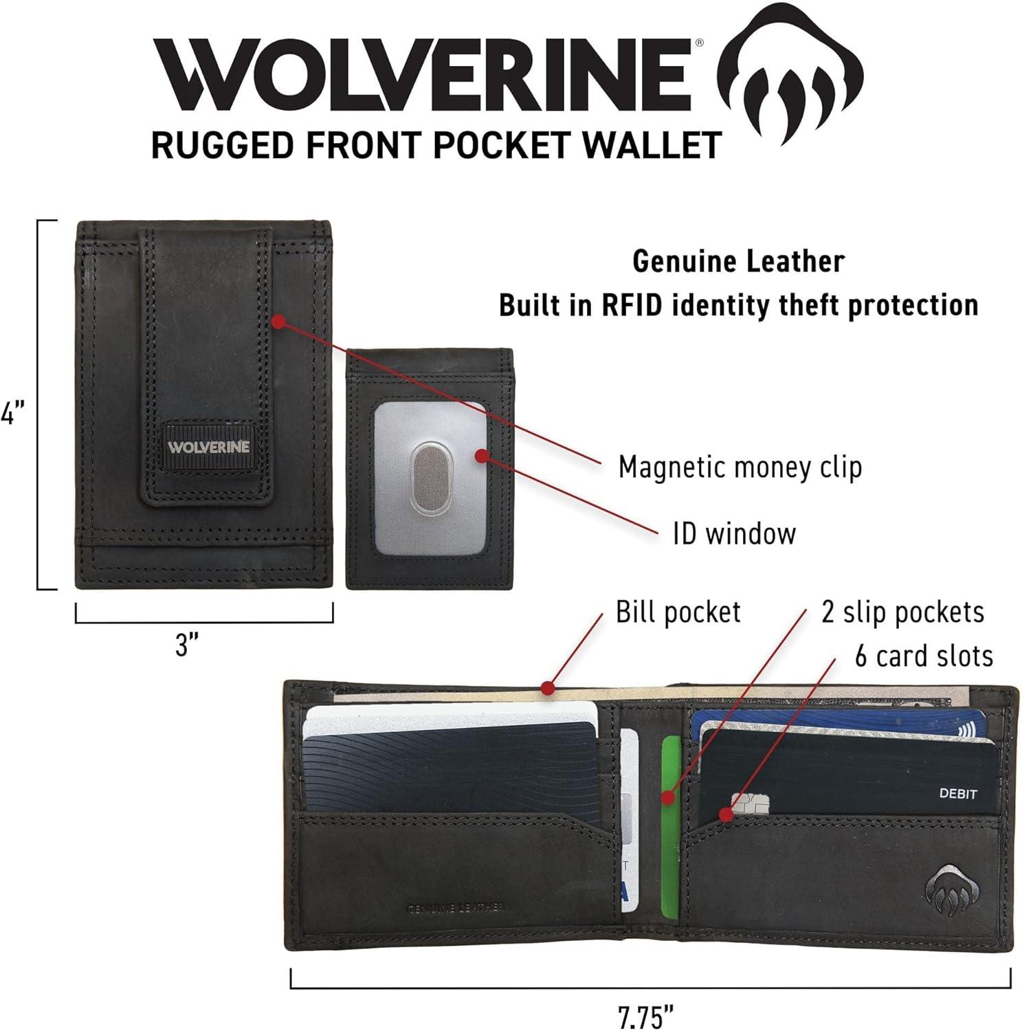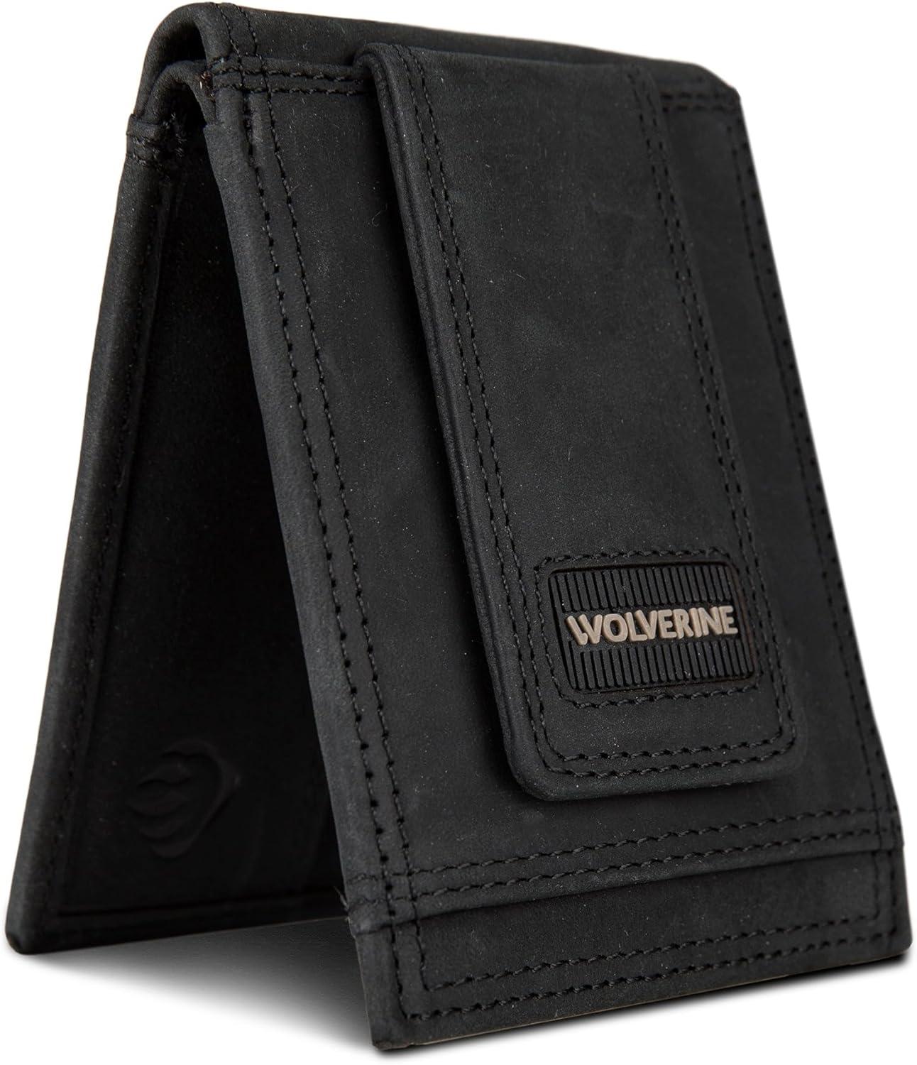 WOLVERINE Men’s Slim Wallet | Card Case | Money Clip | RFID Protection | ID Window | Rugged | Leather | Canvas(Rugged – Black)