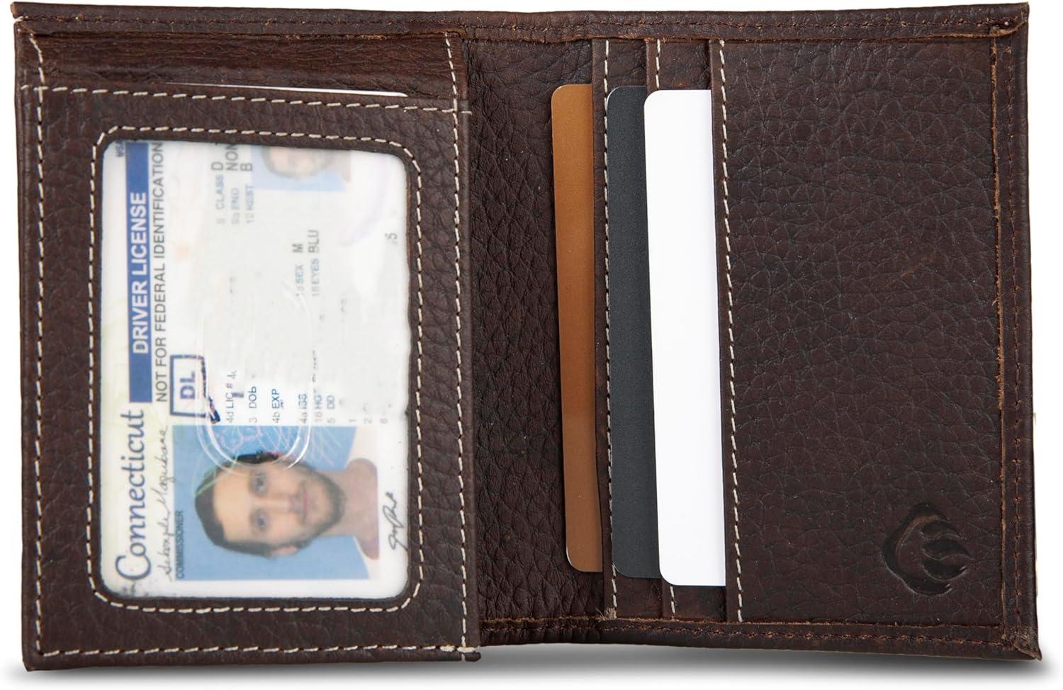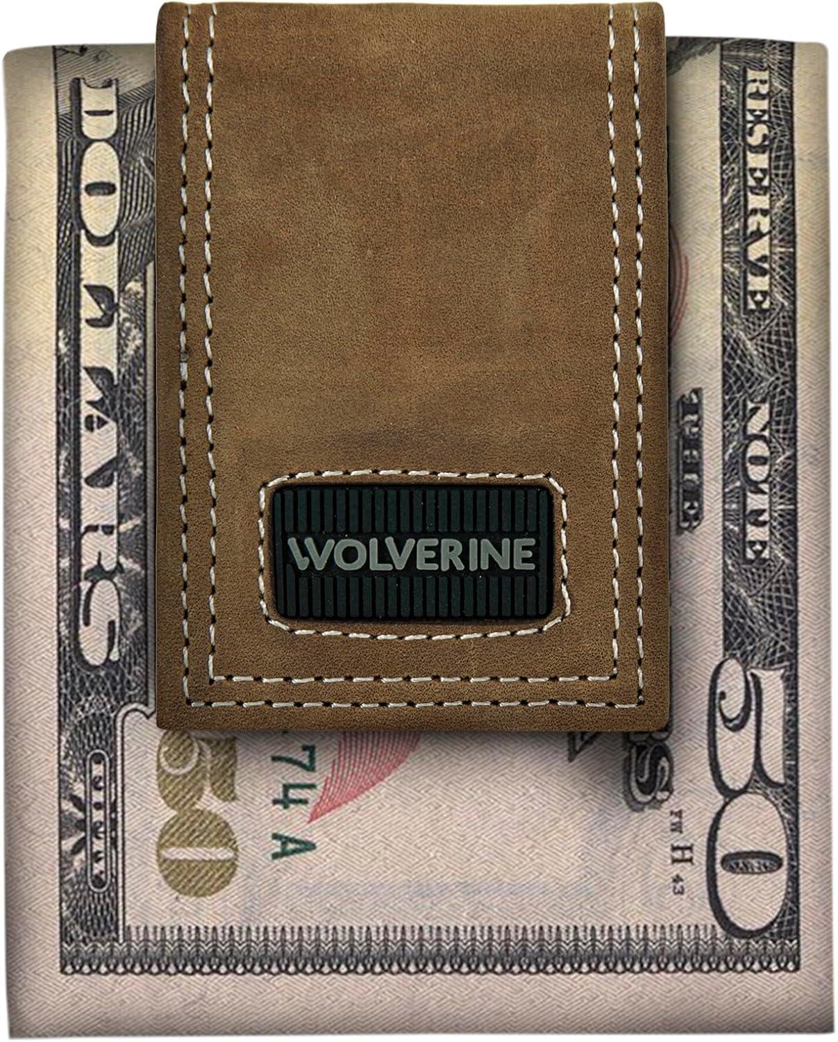 WOLVERINE Men’s Slim Wallet | Card Case | Money Clip | RFID Protection | ID Window | Rugged | Leather | Canvas(Rugged – Brown)