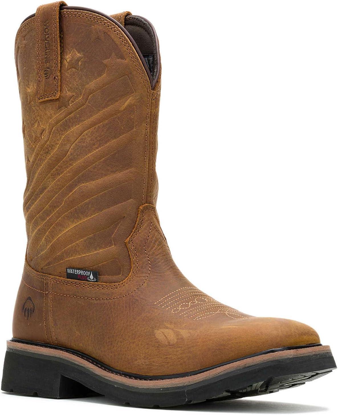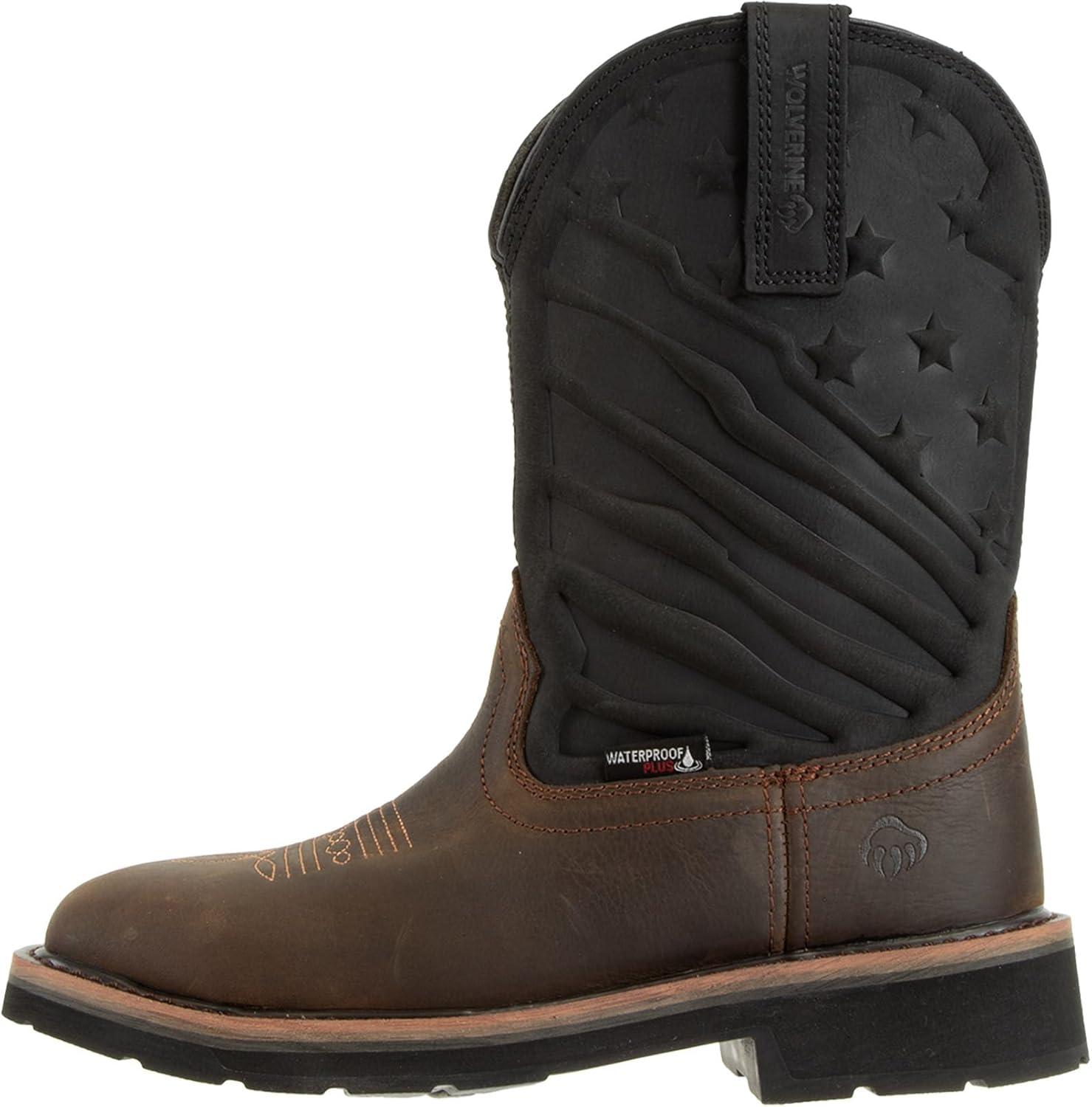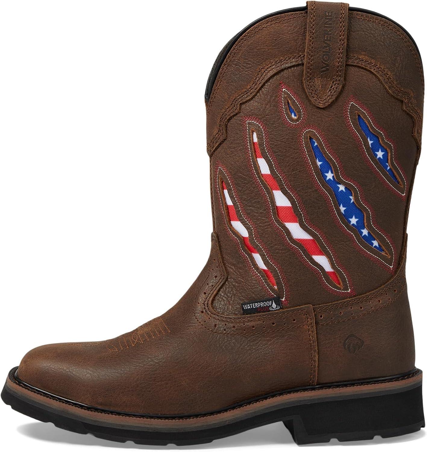 Wolverine Men’s Rancher Claw Steel Toe Waterproof Wellington Boot(Brown/Flag)