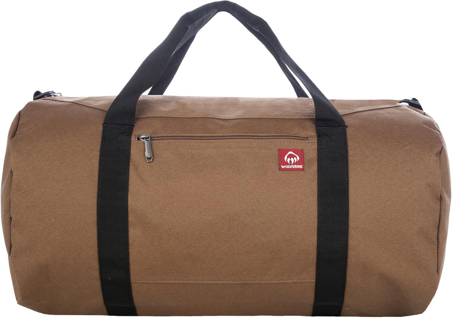 WOLVERINE 22″ Duffel Bag | Heavy Duty | Travel | Work | Outdoor | Center Zip | Barrel | Adjustable Strap(Chestnut)