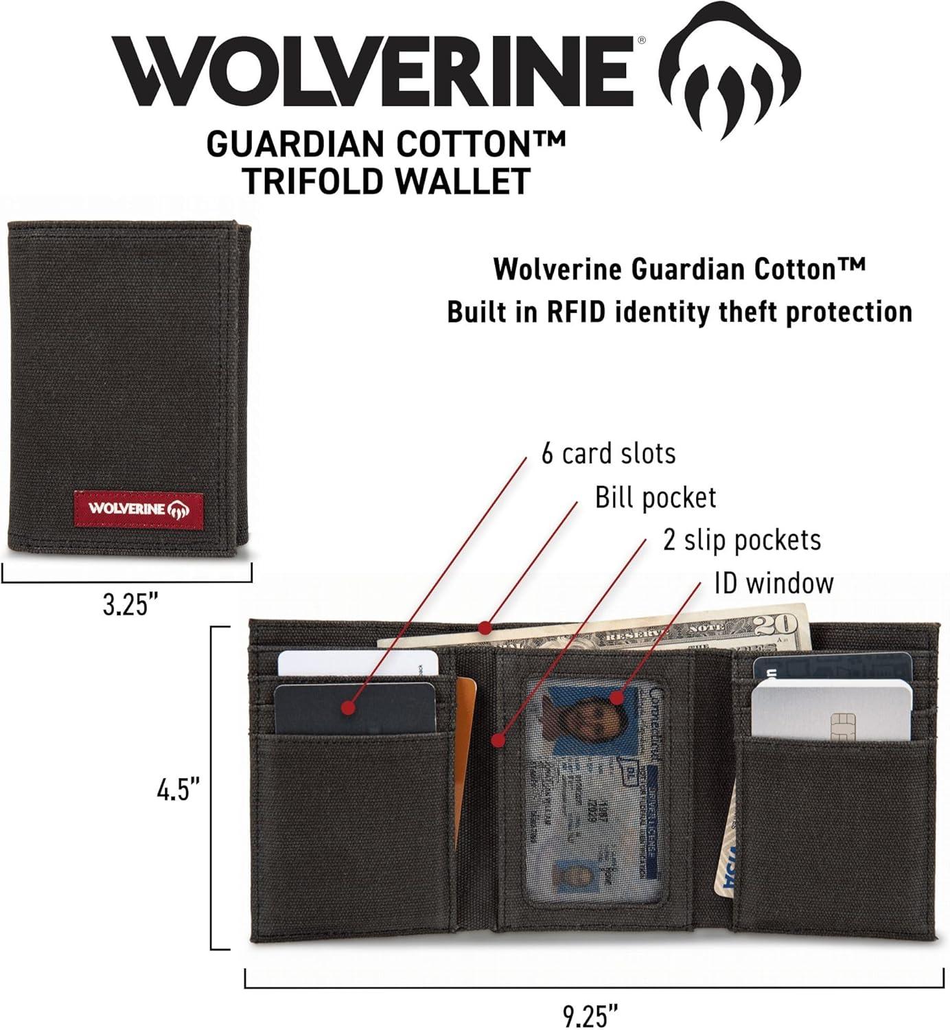 Wolverine Men’s Bifold Wallet | RFID Protection | ID Window | Card Slots | Bill Pocket | Durable | Leather | Canvas(Guardian Cotton – Onyx)