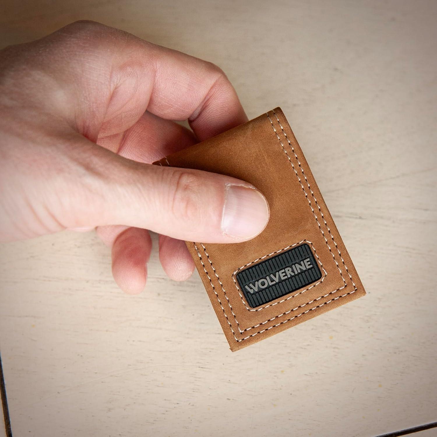 WOLVERINE Men’s Slim Wallet | Card Case | Money Clip | RFID Protection | ID Window | Rugged | Leather | Canvas(Rugged – Brown)