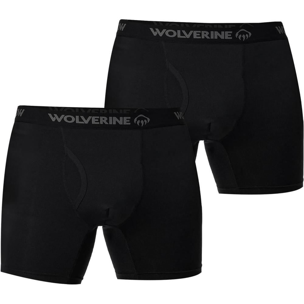 WOLVERINE Men’s Underwear Boxer Briefs Breathable Moisture-Wicking with Fly Underwear for Men, 2-Pack(Black)